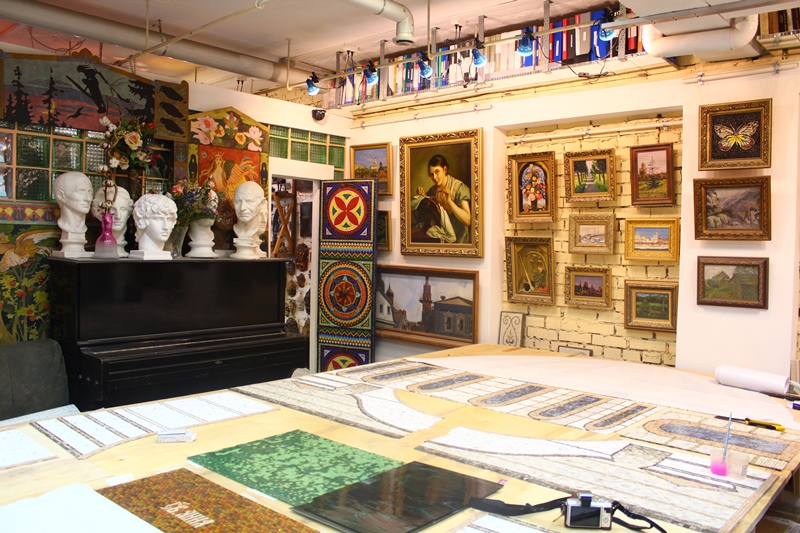 Творческая мастерская центра сразу поразила меня изобилием различных художественных стилей работ, представленных в помещении – от картин маслом до витражей. К моменту моего прихода несколько постоянных посетительниц уже трудились над созданием мозаичных икон, они были глубоко погружены в процесс творчества и выкладывали кусочки стекла на уже готовые рисунки.