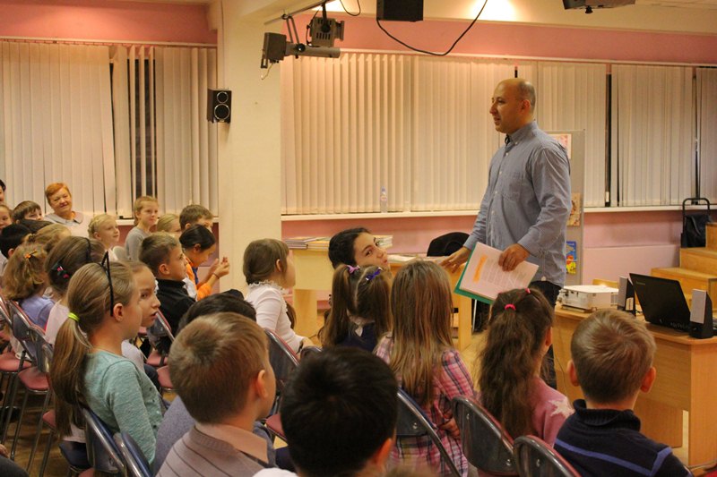 Валентин Постников провел часовую встречу. Она была необычной: писатель провел стихотворные игры, где ребята пытались закончить стихотворение рифмой, загадки-перевертыши. Но больше всего ребятам запомнились именные стихи – Валентин Юрьевич искал в зале ребенка с именем из стихотворения, рассказывал произведение и пытался его обыграть.