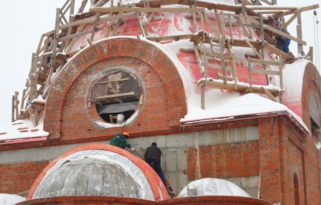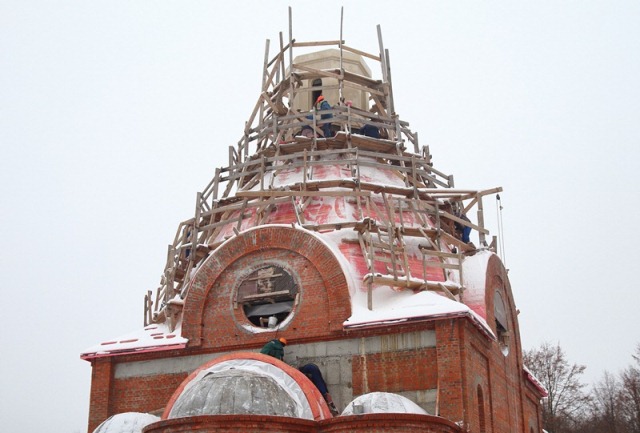 Одним из таких является храм Живоначальной Троицы в Чертанове. Сегодня здесь проводится кирпичная кладка монолитных стен главного здания.