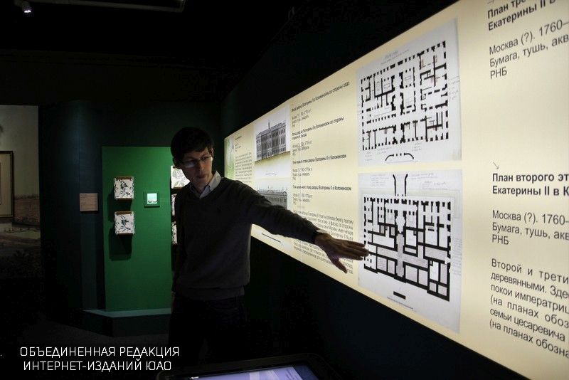 На выставке впервые экспонируется уникальный комплекс чертежей екатерининского дворца, который так и не был построен. Также здесь представлены подлинные документы, рассказывающие о достижениях во внутренней и внешней политике, которые отразились на художественных вкусах, праздничной и повседневной культуре императорского двора.