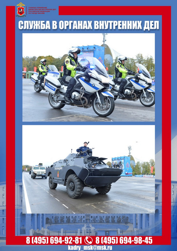 ГУ МВД России по г. Москве приглашает на службу в полицию граждан РФ от 18 до 35 лет, имеющих регистрацию в столице или Подмосковье и годных по состоянию здоровья.