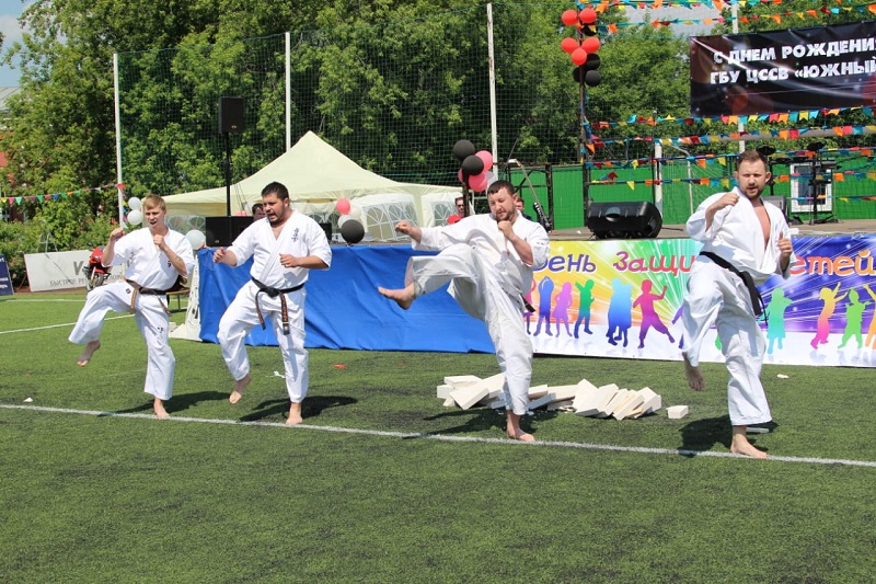 На площадке праздника – Арене «Зябликово» — выступали каратисты-инструкторы из спортивного клуба «Кантемировец». Они показали гостям завораживающее боевое представление с элементами кеокусинкая (например, ломали деревянные доски). Еще одним подарком стала встреча с представителями мотоклуба «Ночные Волки». Дети и взрослые фотографировались с ними и их невероятно крутыми «железными конями» — на мотоциклах можно было даже покататься.